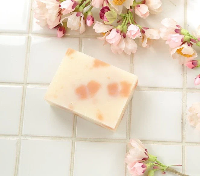 Handcrafted in Hyogo, this sakura-inspired pink and white soap blends cherry blossom leaf extract with natural red clay for a gentle, pore-cleansing lather. Pure and additive-free, it’s a touch of nature for your daily routine.