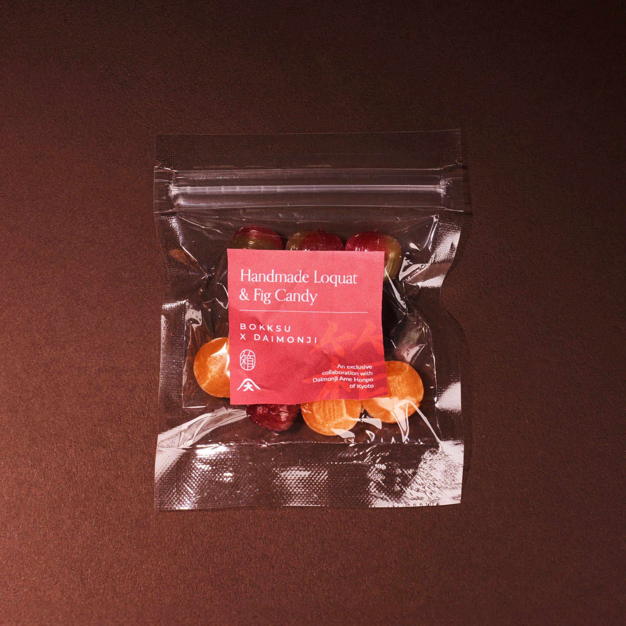 Hand-cut by a traditional Kyoto confectioner, these elegant hard candies come in two tempting flavors: golden loquat, a local specialty, and sweet, mellow fig. Keep these on-hand for an instant pick-me-up whenever you need something sweet.
