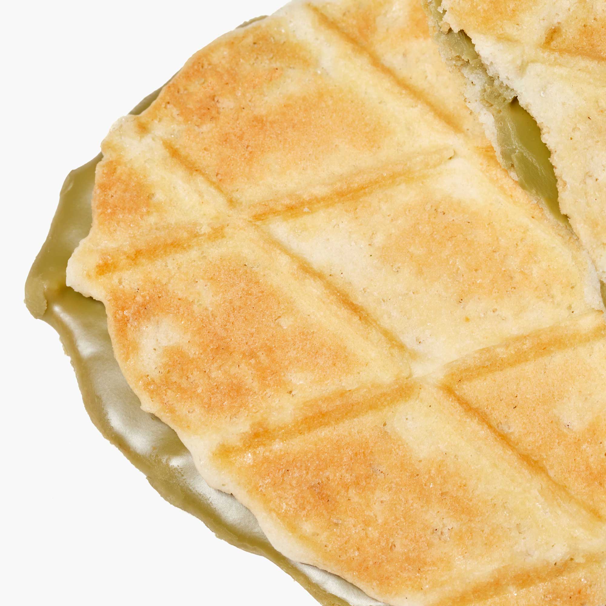 This wispy waffle sandwich is perfectly golden, with smooth cream that marries sweet white chocolate with slightly bitter matcha green tea from Kyoto in the middle.