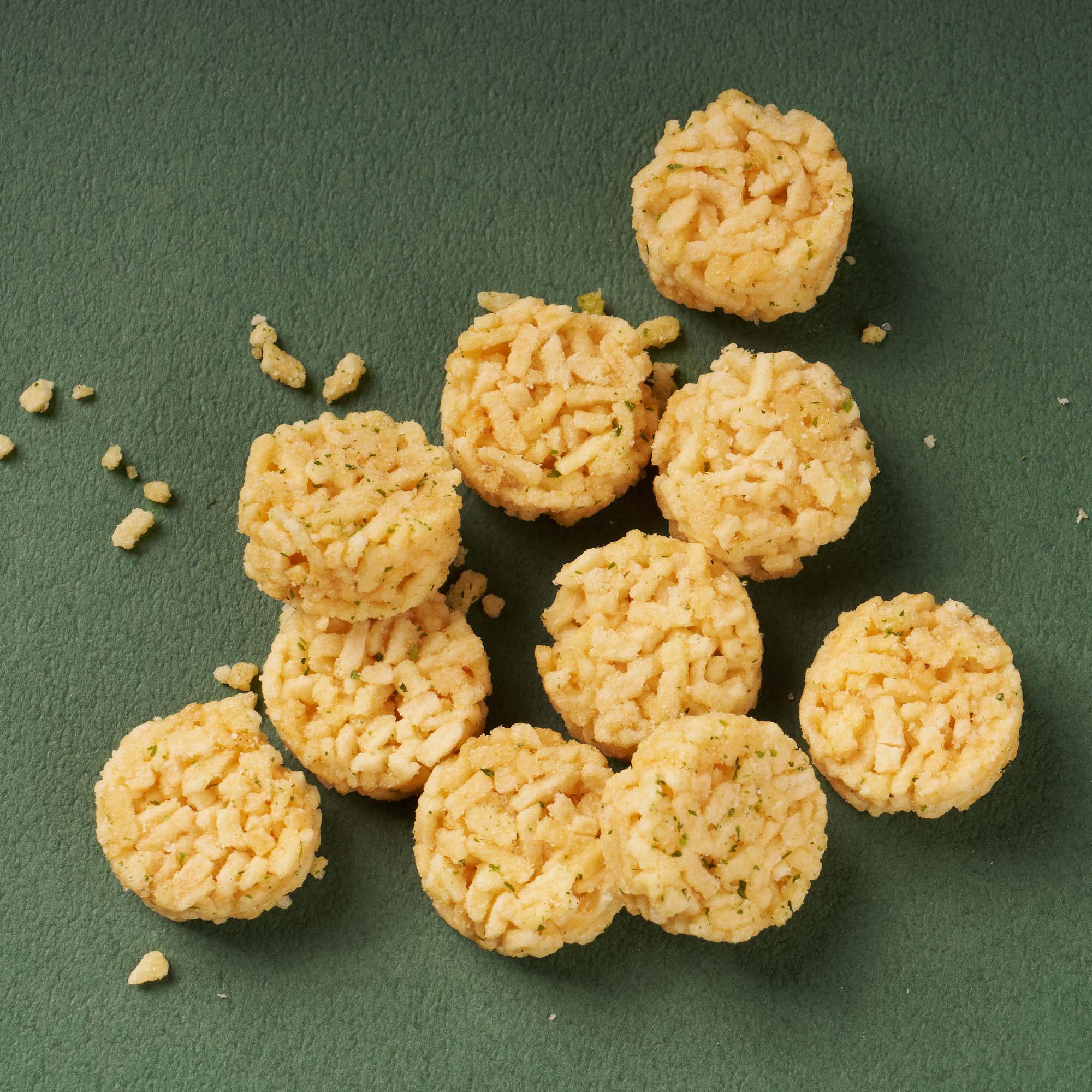 These puffs start crisp, then vanish like steam, leaving behind a savory haze of umami consommé and briny seaweed salt. It's a snack that transforms as you eat, inviting your palate to tune into each shift.