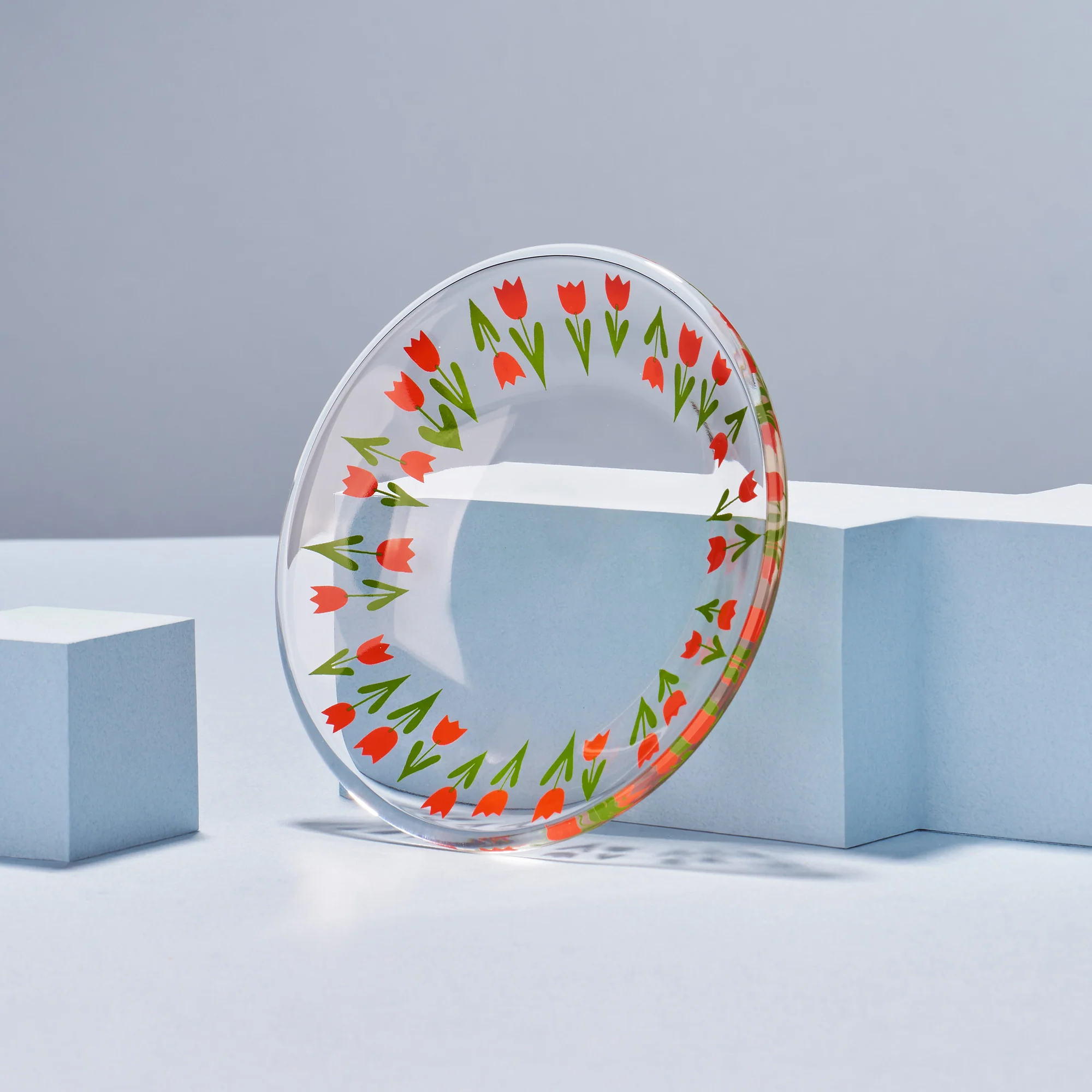 A 1973 Adelia tulip-patterned side plate that pairs beautifully with the retro café glass. Perfect for desserts, snacks, or accessories. -