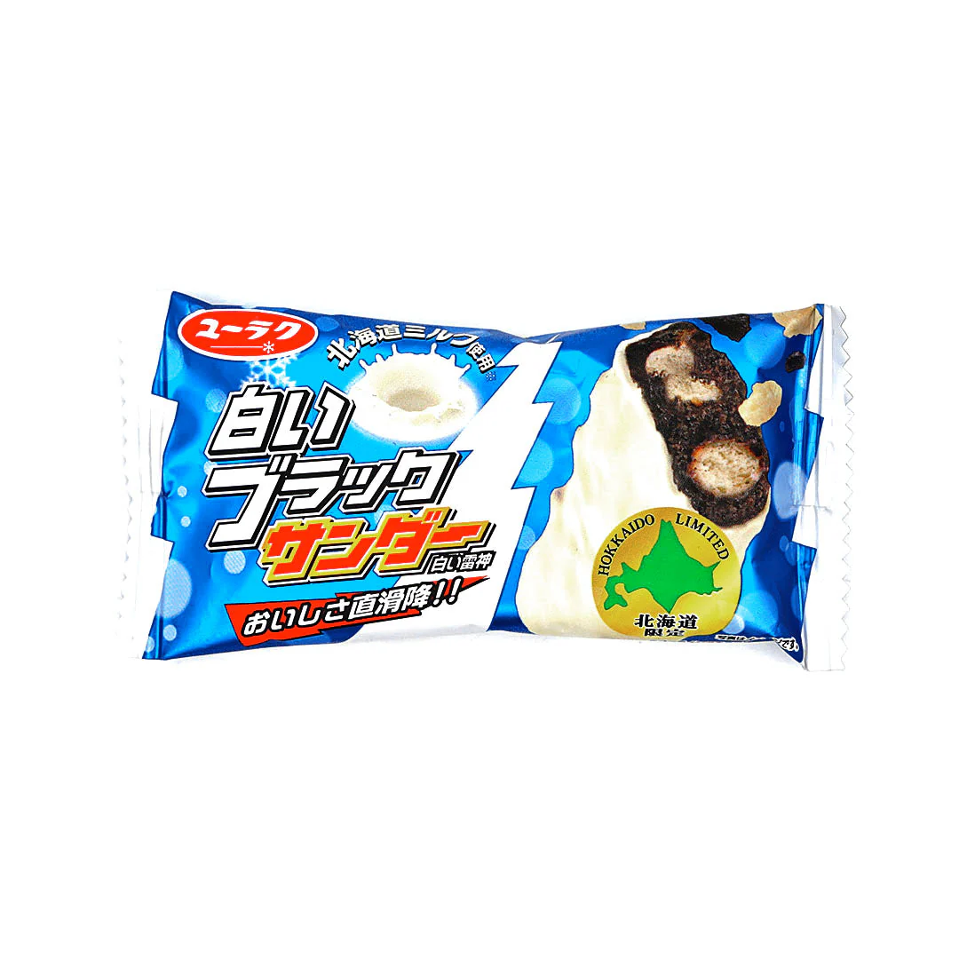 Black Thunder is one of Japan’s more popular candy bars. It’s a mix of chocolate, chocolate cookies, and puffed rice, delivering an intensely chocolate flavor in a flash of lighting. Each bite is rich yet light, and just a tad bit crunchy. The classic Black Thunder bar is enrobed in a snowy white chocolate coating to make White Black Thunder, and adds a creaminess to every bite. As shown on the package, White Black Thunder is a Hokkaido limited specialty, made only for the famously snowy prefecture.